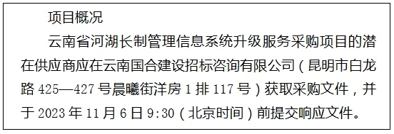 采购需求:升级云南省河湖长制管理信息系统,以实现河道砂石采运单信息化管理功能,支撑河道砂石开采、运输、堆存等全过程监管。包括在WEB端和移动端录入河湖基础信息,实现河道砂石采运单一船(车)次一码制发河道砂石采运电子单(在线填报、审核、流转等),完成现有及新批准采砂场数据接入,展示监管一张图等。