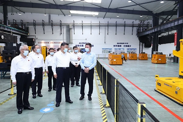 习近平17日在沈阳市考察调研。当天下午,他来到沈阳新松机器人自动化股份有限公司。在企业展厅,习近平听取辽宁新时代东北振兴整体情况介绍,察看辽宁先进科技产品集中展示,并考察了新松公司生产经营、自主创新情况。企业生产车间内,工业机器人、协作机器人、特种机器人等正在进行测试。习近平向技术人员和企业职工询问企业开展核心技术攻关等情况,对企业自主创新和产业化发展取得的成绩予以肯定,表示新松公司体现了中国速度、中国水平。