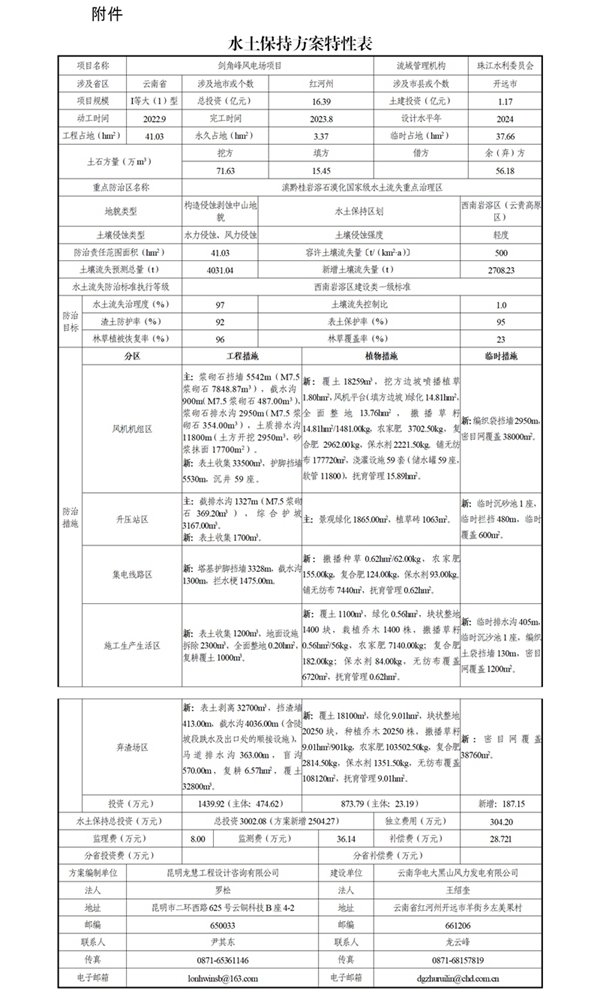 附件:水土保持方案特性表