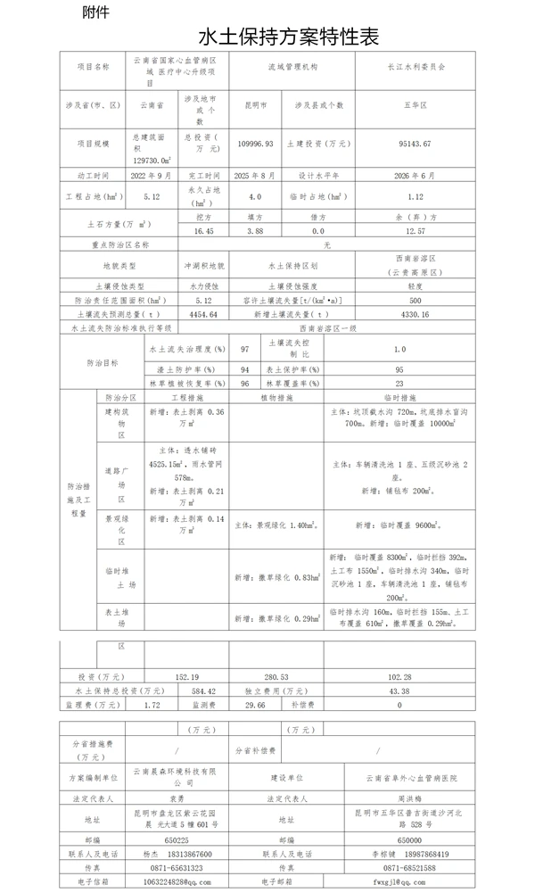 附件:水土保持方案特性表