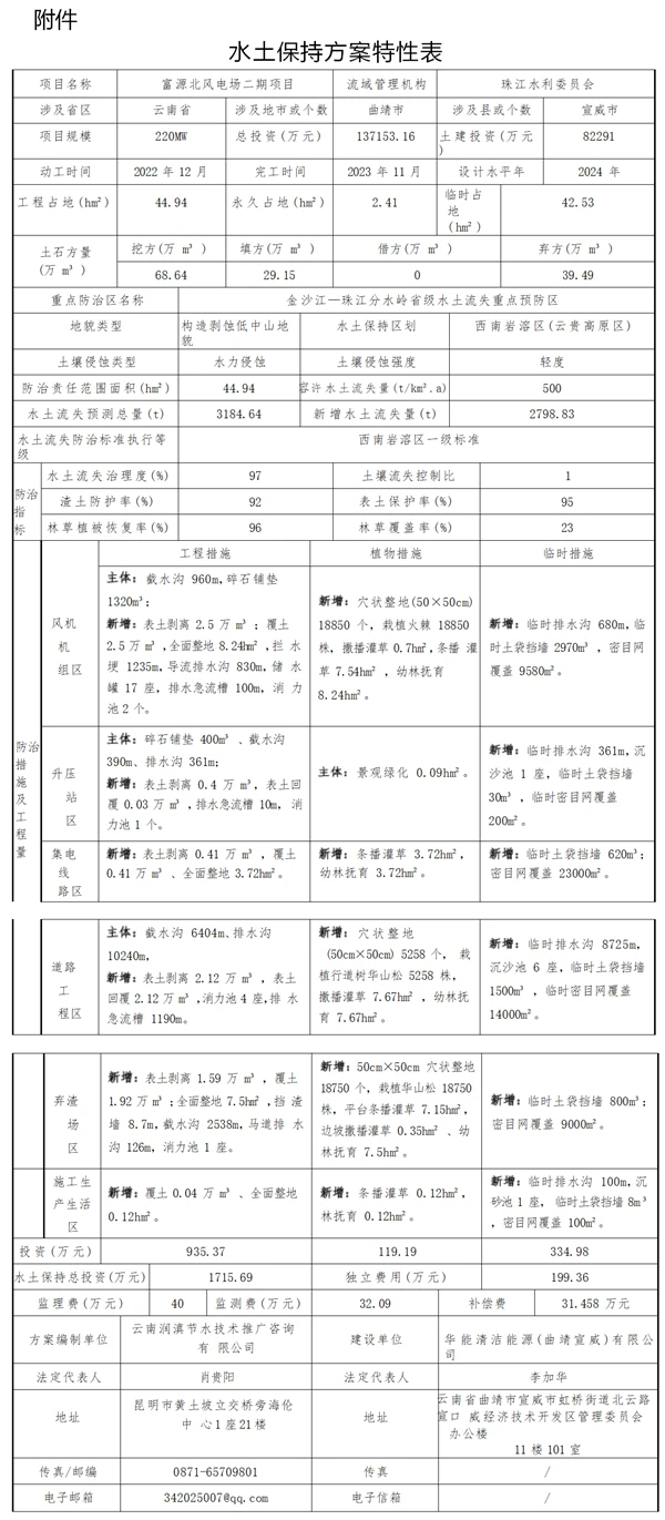 你单位关于富源北风电场二期项目水土保持方案审批的申请收悉。经研究,审批意见如下:
