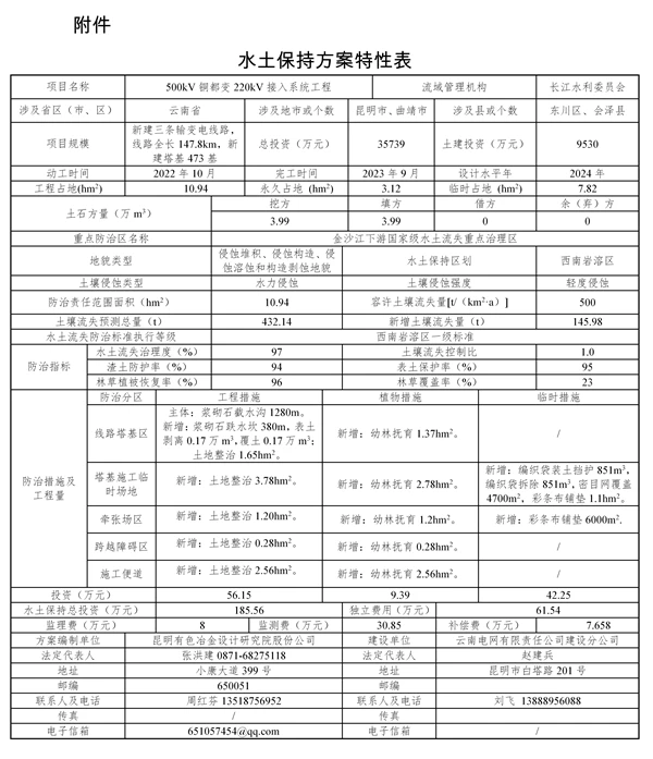 云南省水利厅关于500kV铜都变220kV接入系统工程水土保持方案的审批意见