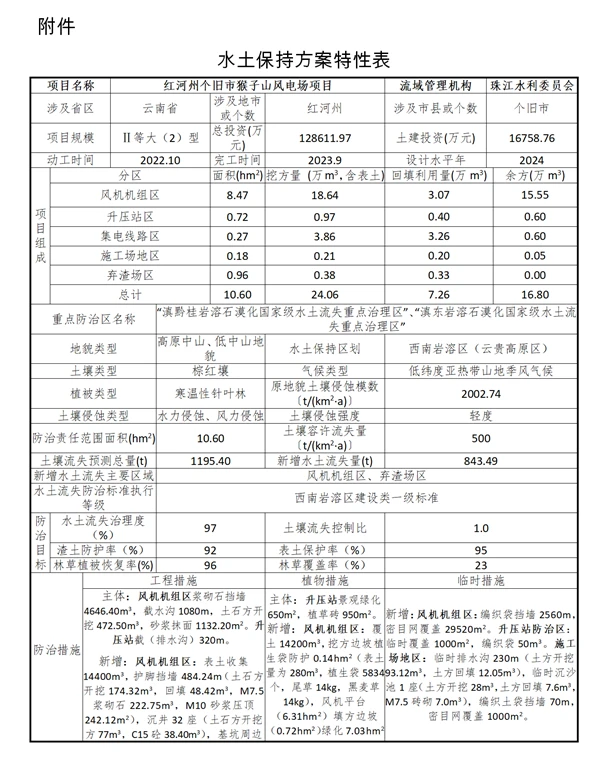 你单位关于红河哈尼族彝族自治州个旧市猴子山风电场项目水土保持方案审批的申请收悉。经研究,审批意见如下: