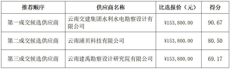 现对以上结果进行公示,公示期为3个工作日,如无疑义,公示期满后,确定第一成交候选供应商为成交单位,请该单位到云南元大工程咨询有限责任公司领取《成交通知书》并办理相关事宜。