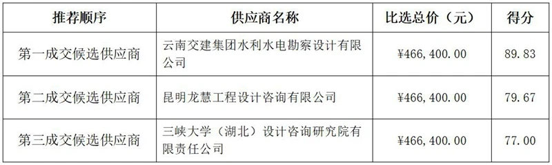 现对以上结果进行公示,公示期为3个工作日,如无疑义,公示期满后,确定第一成交候选供应商为成交单位,请该单位到云南元大工程咨询有限责任公司领取《成交通知书》并办理相关事宜。