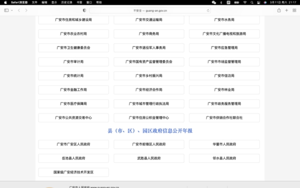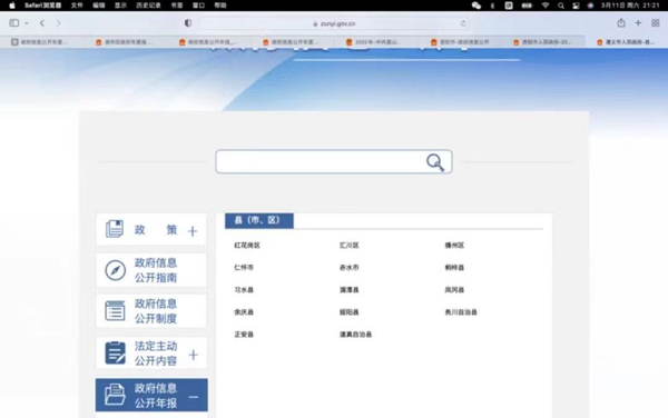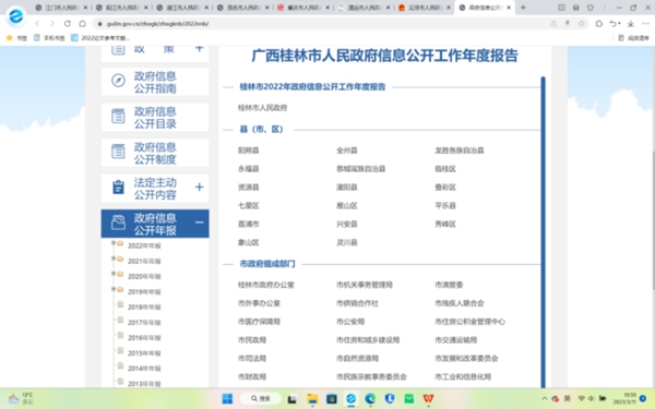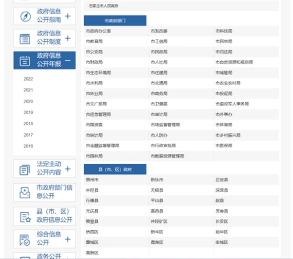 本次评估中绝大多数地级市设置专门的公开平台来发布政府信息公开工作年度报告。其不仅发布本级部门的政府信息公开工作年度报告,也为其下属部门和下辖县(区)政府集中发布政府信息公开工作年度报告,如:河北省石家庄市、广西壮族自治区桂林市、四川省广安市、四川省达州市、贵州省贵阳市、贵州省遵义市、云南省昆明市、云南省保山市等。