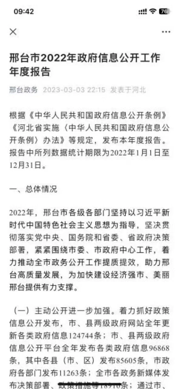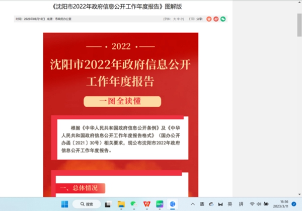 评估发现,一些地级市在发布2022年政府信息公开工作年度报告中,还发布相应的解读报告,使政府信息公开以图解的形式呈现给浏览者,形象地展示了政府信息公开情况。这些地方政府如:辽宁省沈阳市、浙江省杭州市、浙江省金华市、浙江省嘉兴市、浙江省湖州市、山东省济南市、山东省菏泽市、山东省德州市、湖南省长沙市、四川省成都市、河北省唐山市、河北省邢台市等。