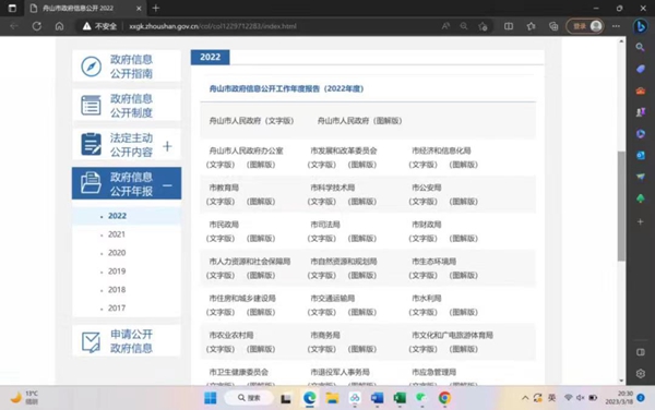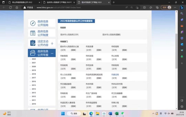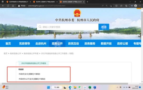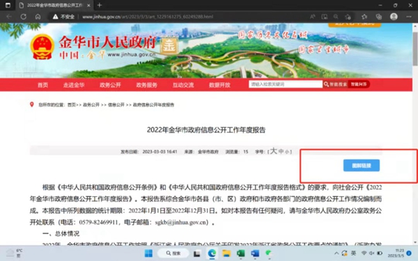 一些地级市创新发布形式,集中发布具有各级政府和各部门的2022年政府信息公开工作年度报告的图解版,方便浏览者查阅相关图解报告。这些地级市是:浙江省湖州市、浙江省金华市、浙江省舟山市、浙江省丽水市等。