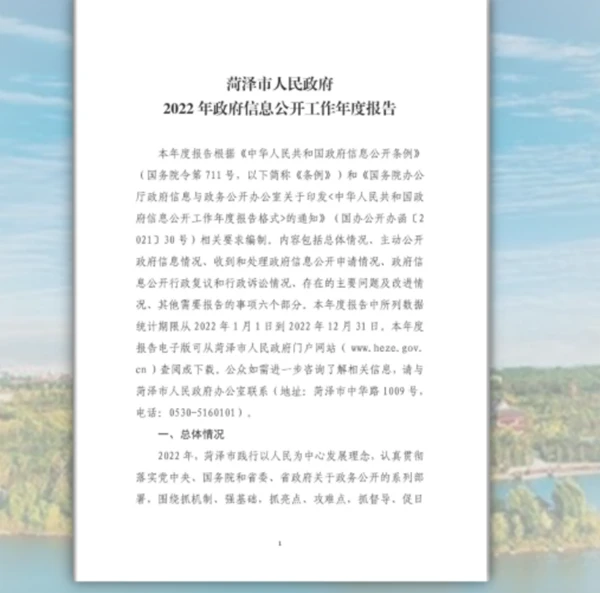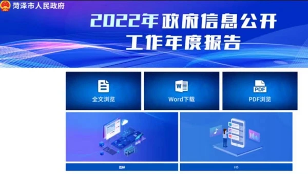 山东省菏泽市在其发布的政府信息公开工作年度报告中,以书册翻页的形式发布。