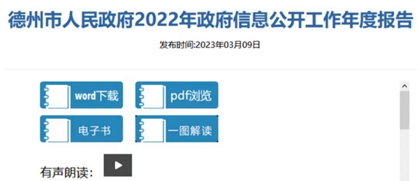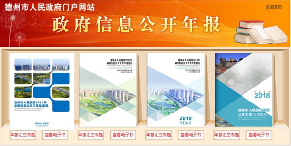 一些地级市设有集中发布平台,同时发布政府信息公开工作年度报告汇总专题并配备相关电子书查看,如山东省德州市。