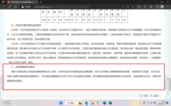 值得一提的是,此次发布的报告中,浙江省杭州市对于信息处理费表述详实,既表明依据,又说明数据和费用,政府信息公开信息处理费的收取情况公开透明。