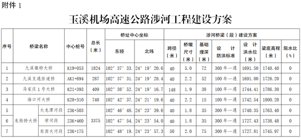附件:1.玉溪机场高速公路涉河工程建设方案