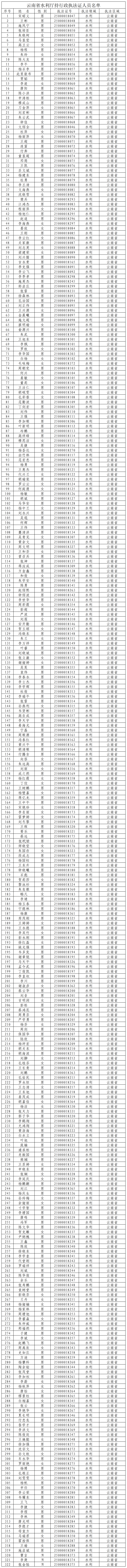 云南省水利厅持行政执法证人员名单