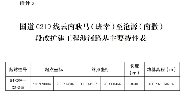 3.国道G219线云南耿马(班幸)至沧源(南撒)段改扩建工程涉河路基主要特性表