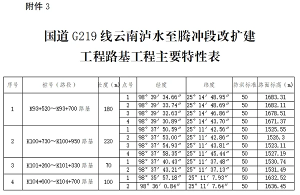 3.国道G219线云南泸水至腾冲段改扩建工程路基工程主要特性表