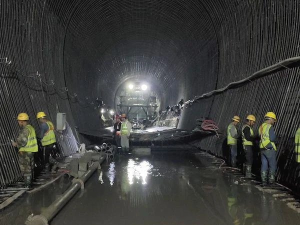 走进滇中引水工程昆明段施工3标龙泉隧洞2号支洞施工现场,工人们正在地下40多米的隧洞中加紧进行钢筋绑扎作业。龙泉隧洞是滇中引水工程昆明段的重要节点工程,由于洞身开挖存在断层破碎带、滇中红层软岩等不良地质情况,开挖过程中易发生隧洞塌方、变形、涌突水等地质风险,建设难度较大。