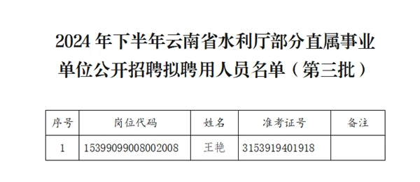 附件:2024年下半年云南省水利厅部分直属事业单位公开招聘拟聘用人员名单(第三批)