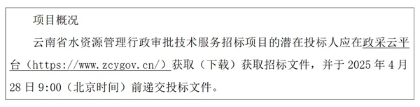 采购需求:云南省水资源管理行政审批技术服务采购,随着省管取用水单位数量的增多和具体取水项目类型的多样化,以及工程建设影响水文站监测事项的增多,相关的论证报告、现场核验等工作的技术评估越来越需要具有资质和经验的技术单位和专家进行把关,提出技术评审意见,明确是否满足批准条件,以更好地推进全省水资源管理工作。本项目不划分标段。