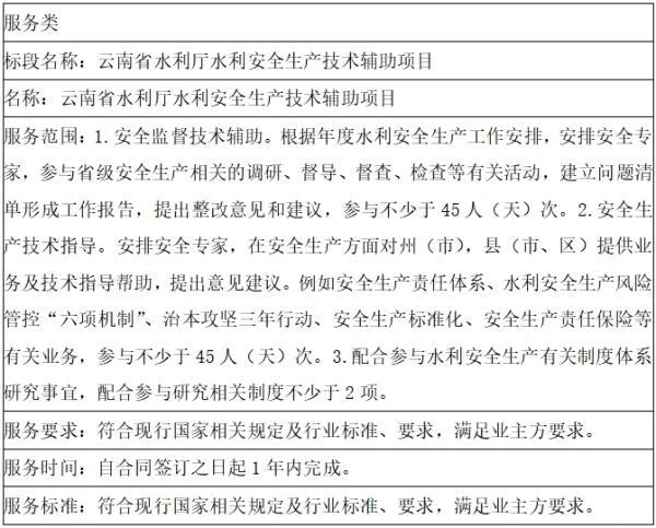 标段名称:云南省水利厅水利安全生产技术辅助项目