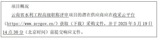 采购需求:实现高效、公正的云南省水利工程高级职称、中级职称、初级职称评审,协助落实政府采购政策,保障评审全流程合法合规,推动行业人才发展。