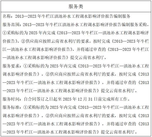三、项目名称:2013—2023年牛栏江滇池补水工程调水影响评价报告编制服务