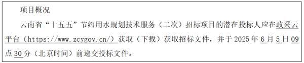 项目名称:云南省“十五五”节约用水规划技术服务(二次)