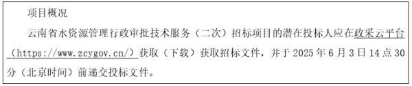 项目名称:云南省水资源管理行政审批技术服务(二次)