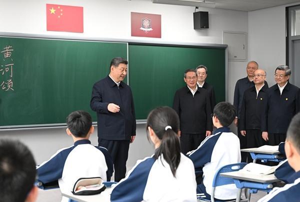 北京市援建的北京四中雄安校区2023年8月投入使用,现有学生380多人。教学楼里,学生们正在上课。习近平走进初一(2)班教室,同师生交谈,了解教学情况。他希望把北京四中办学的好经验好做法带过来,用心用情呵护孩子们身心健康,促进孩子们全面发展。