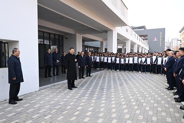 在学校食堂,习近平察看就餐环境、菜品种类等,叮嘱一定要确保学生饮食的安全和营养。离开学校时,师生们一齐向总书记问好,习近平勉励孩子们惜福奋进、积极向上,与雄安新区一起成长,与中国式现代化同步发展。