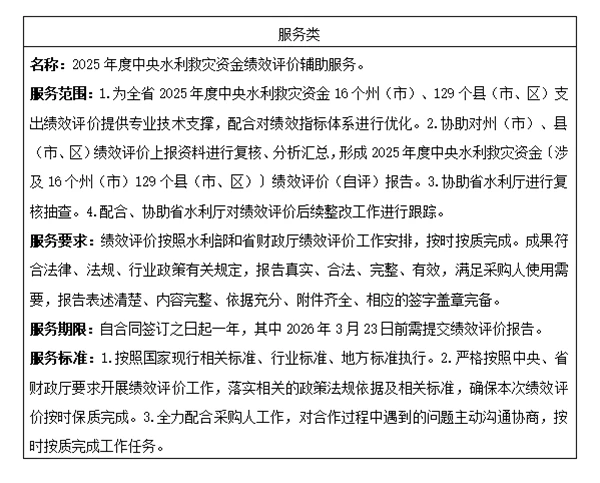 二、项目名称:2025年度中央水利救灾资金绩效评价辅助服务