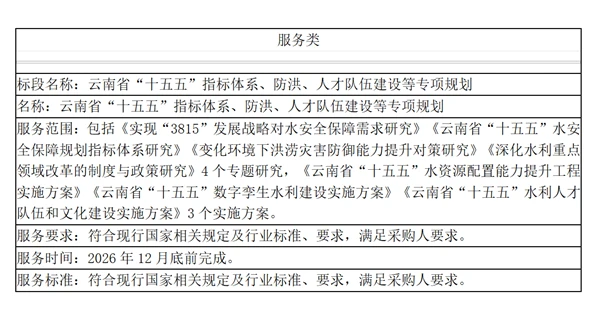 标段名称:云南省“十五五”指标体系、防洪、人才队伍建设等专项规划