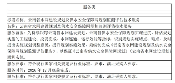 标段名称:云南省水网建设规划及供水安全保障网规划监测评估技术服务