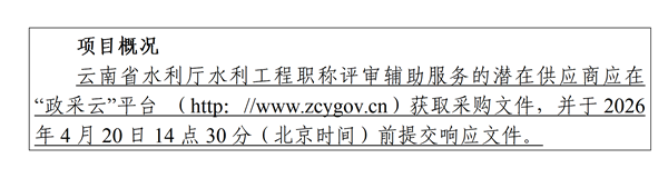2.项目名称:云南省水利厅水利工程职称评审辅助服务;