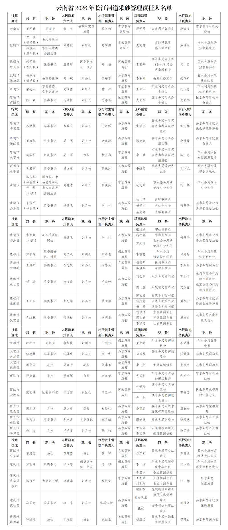 关于云南省2026年长江河道采砂管理责任人名单的公告